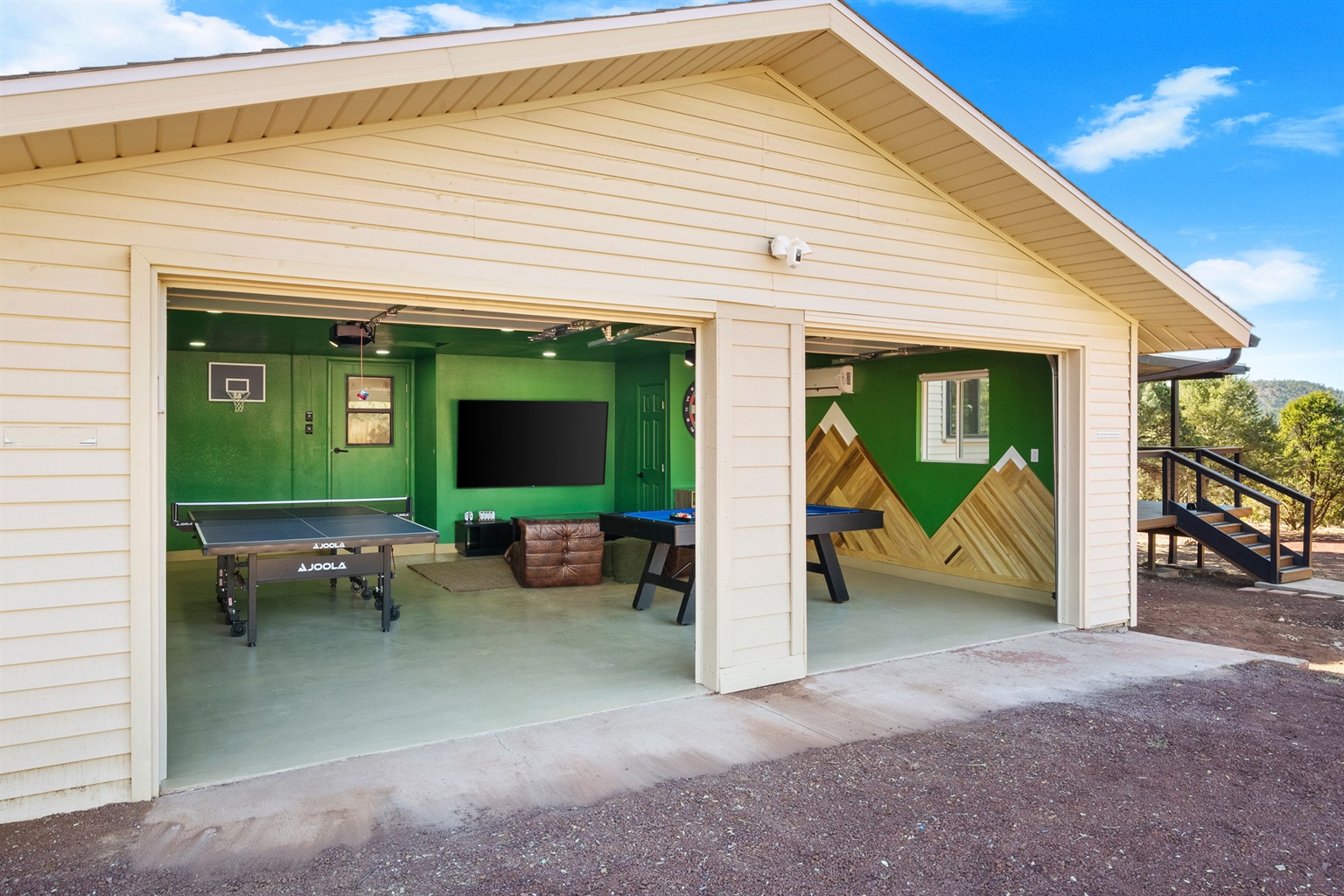 Attached Property Mighty Moose, Family Cabin with Game-Room Garage
